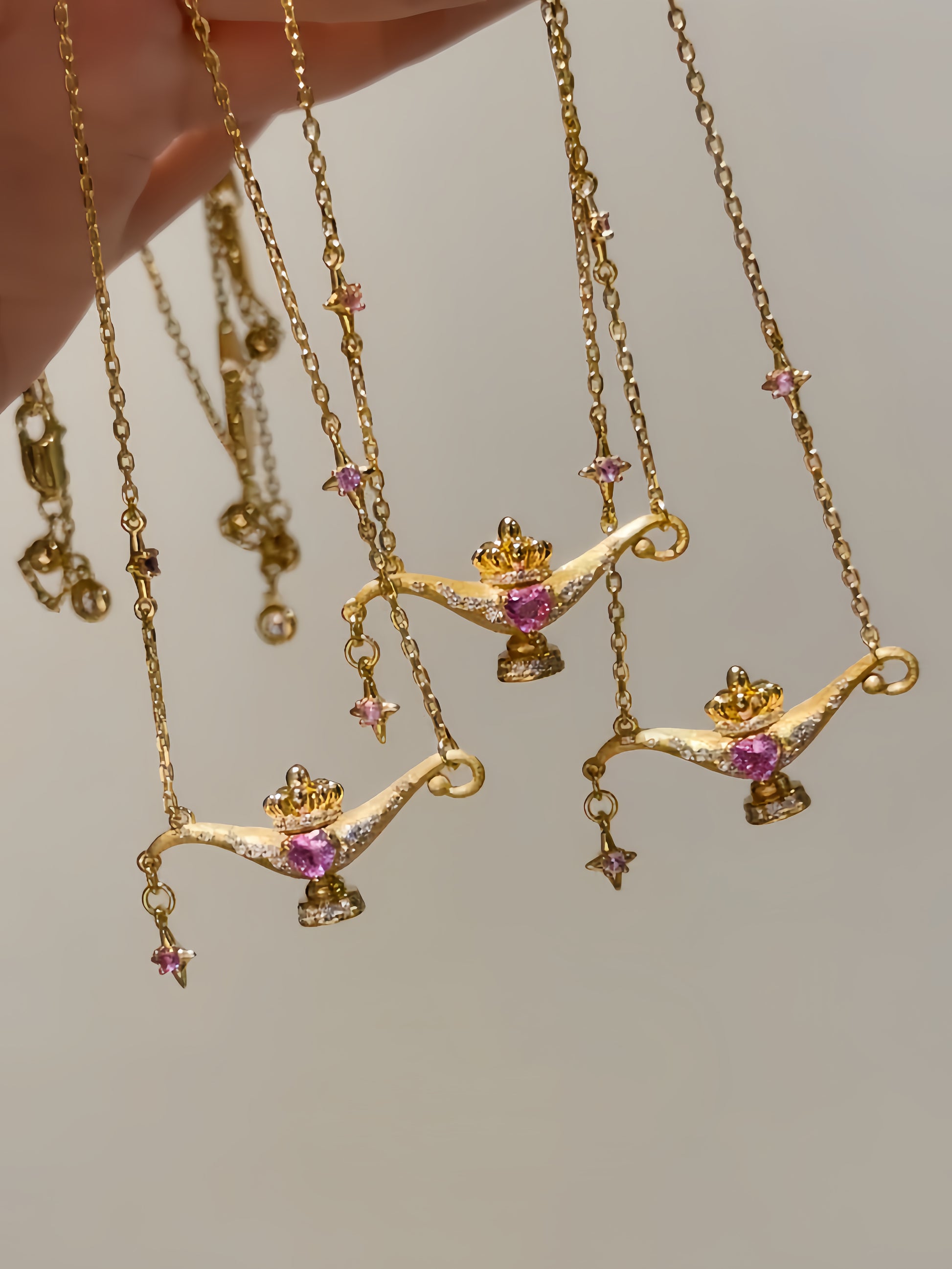 This exquisite wish necklace draws inspiration from the classic Aladdin's genie lamp, with every detail infused with mystical magic. When you gently touch this miniature genie lamp, you can almost hear ancient wishing spells whispering in your ear.