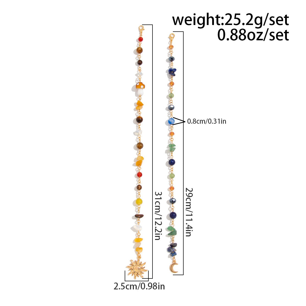 Picture this: You're walking through the festival crowd, sunlight dancing through your hair, and this colorful gemstone chain sways gracefully with every step. The sun and moon charms glisten in the light—you're the most free-spirited, radiant soul in the crowd.