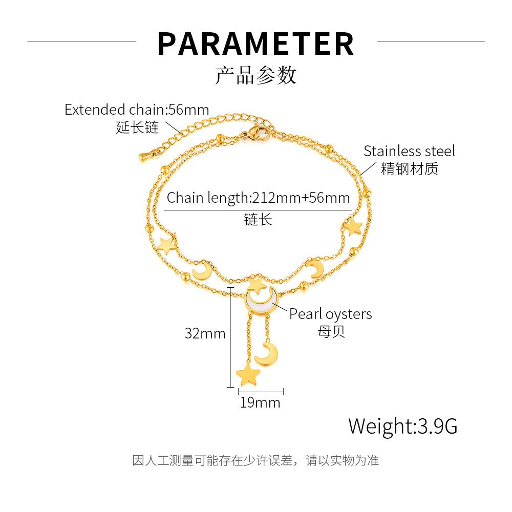 Celestial Moon and Star Double Chain Anklet - 14K Gold Plated