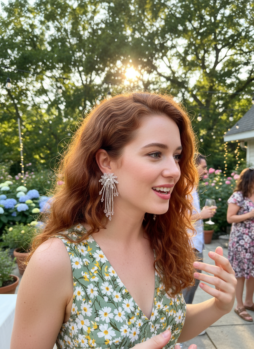 These statement earrings effortlessly transition from casual brunches to elegant evening events. Pair with a simple sweater for everyday chic, or complement your cocktail dress for special occasions. The sparkling beads add sophistication to any outfit.