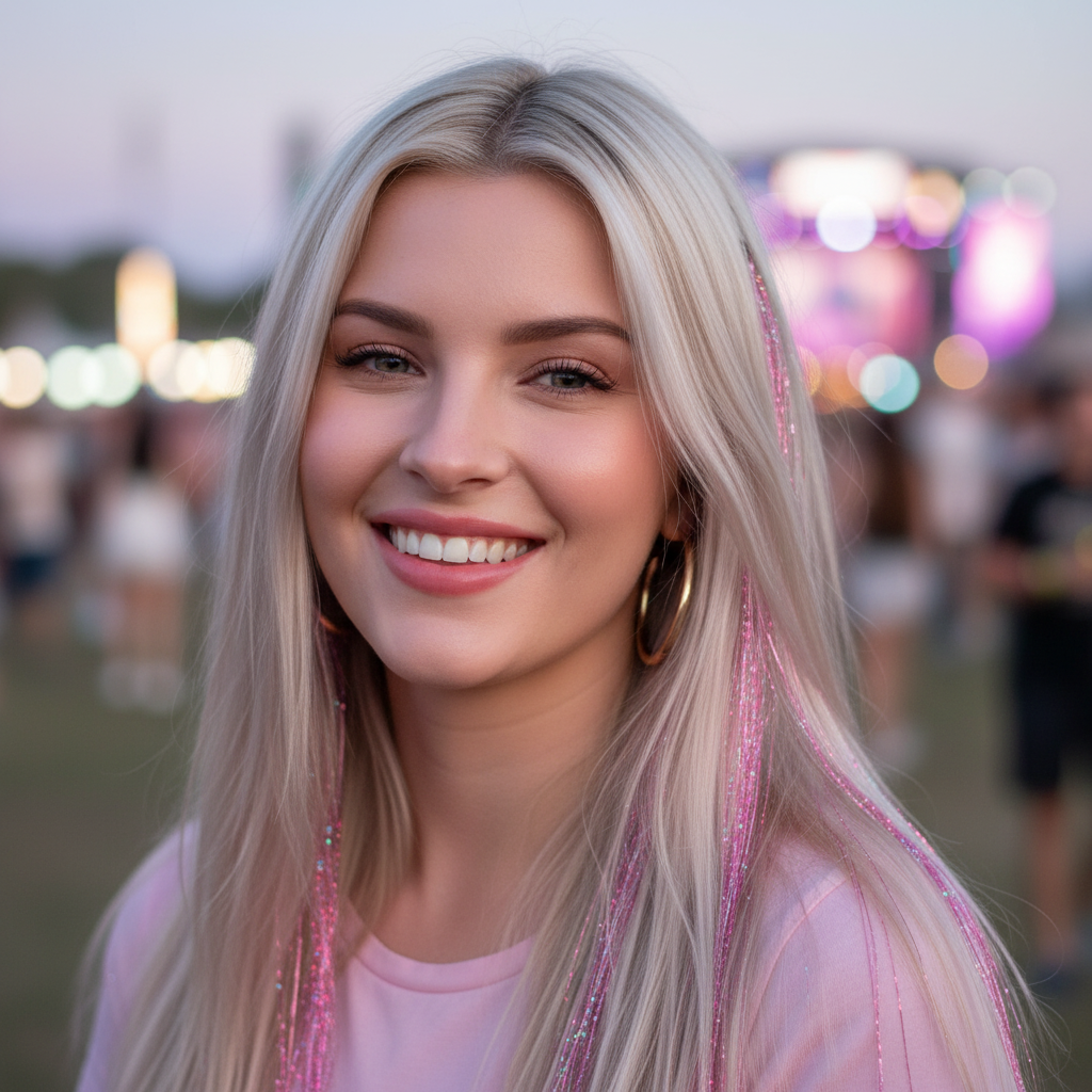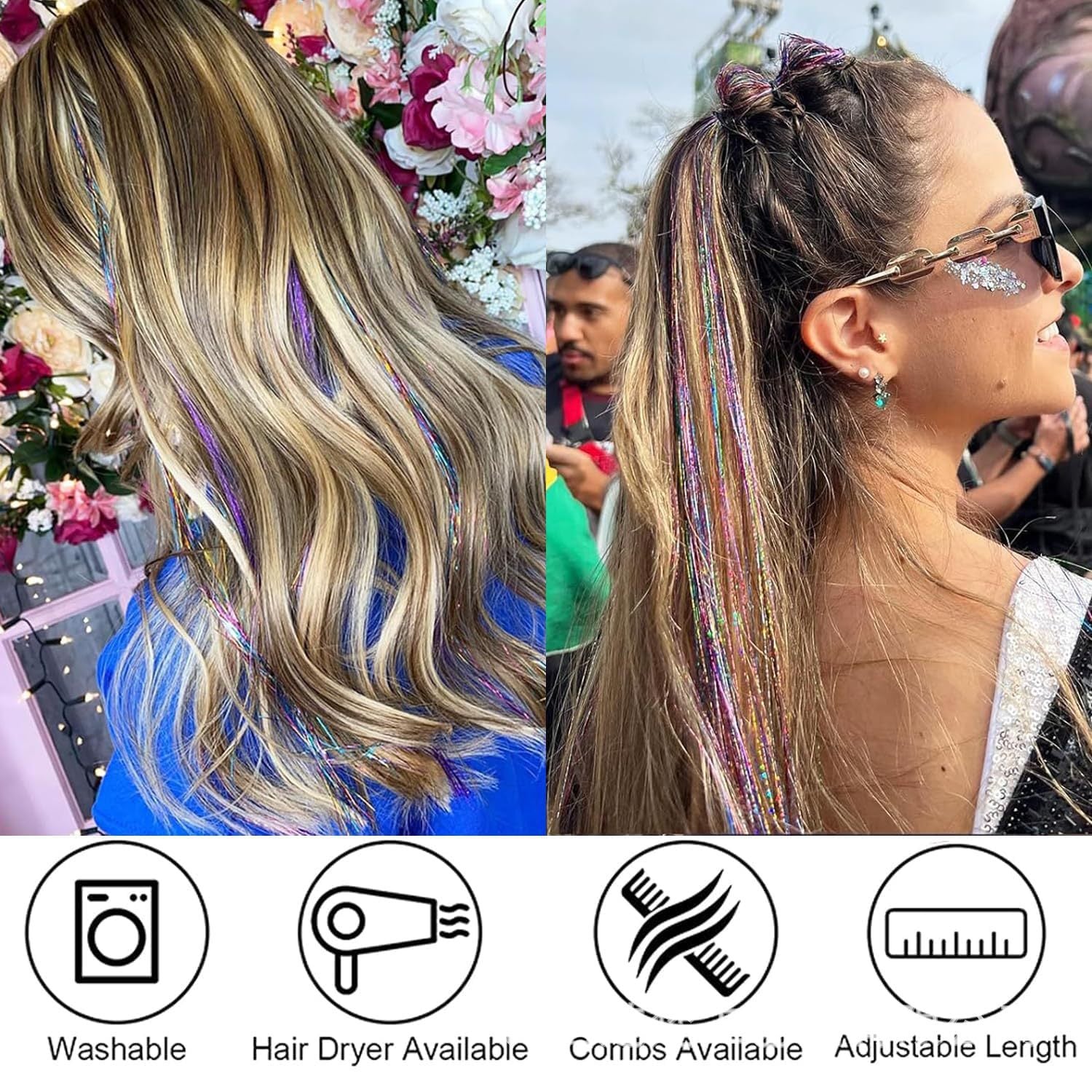 Whether you're heading to a music festival, attending a party, or just want to feel fabulous every day, these holographic hair tinsel extensions are your perfect accessory. The clips stay hidden while the iridescent strands add playful, eye-catching shimmer that moves with you!