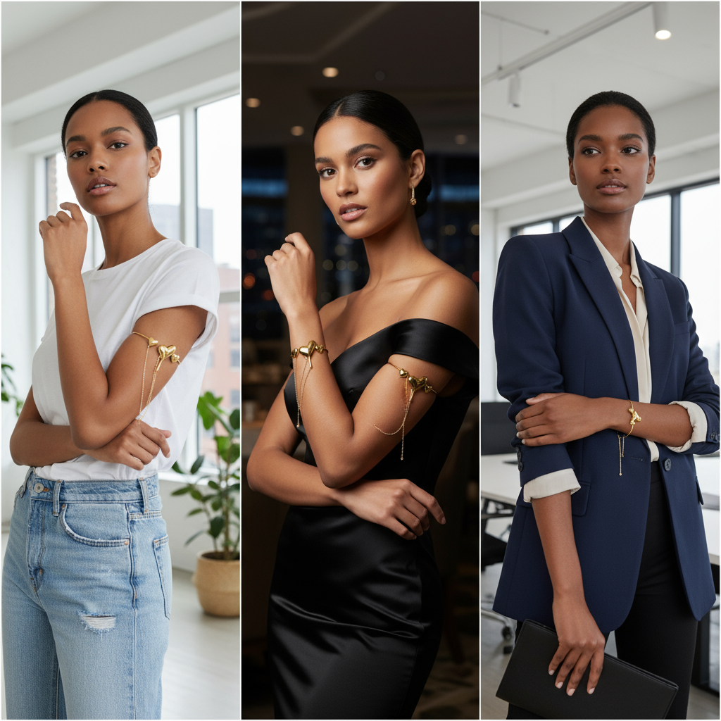 Whether it's casual everyday wear, romantic date nights, or glamorous parties, this arm cuff adds a touch of romance to any look. Pair it with strapless tops, tank tops, or sleeveless dresses to showcase your elegant arm lines.