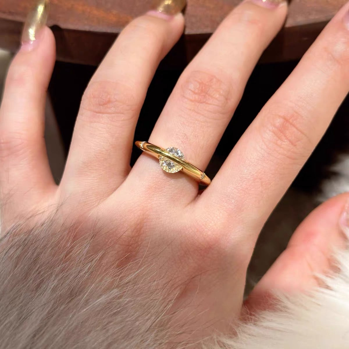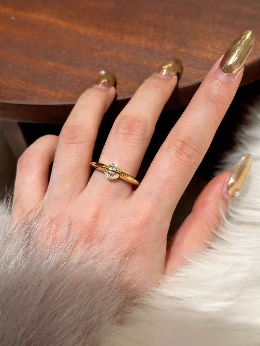 The gold-plated band provides durability and elegance. Each rotation reveals different angles of brilliant sparkle, inspired by the celestial movement of planets in the universe.