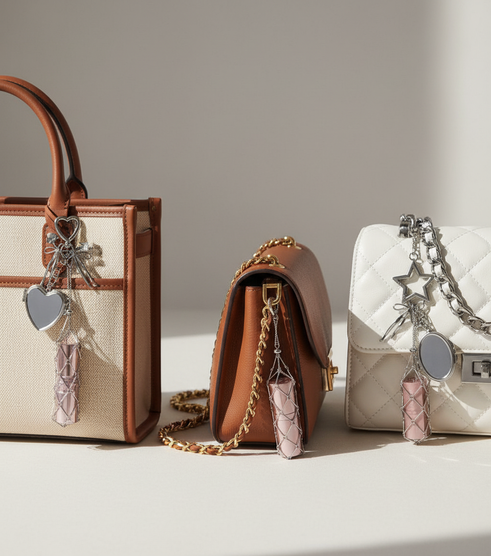 This charm effortlessly complements any handbag - from classic black quilted lambskin to soft pink leather shoulder bags, navy structured totes, or casual crossbody styles. Also works beautifully as a keychain accessory.